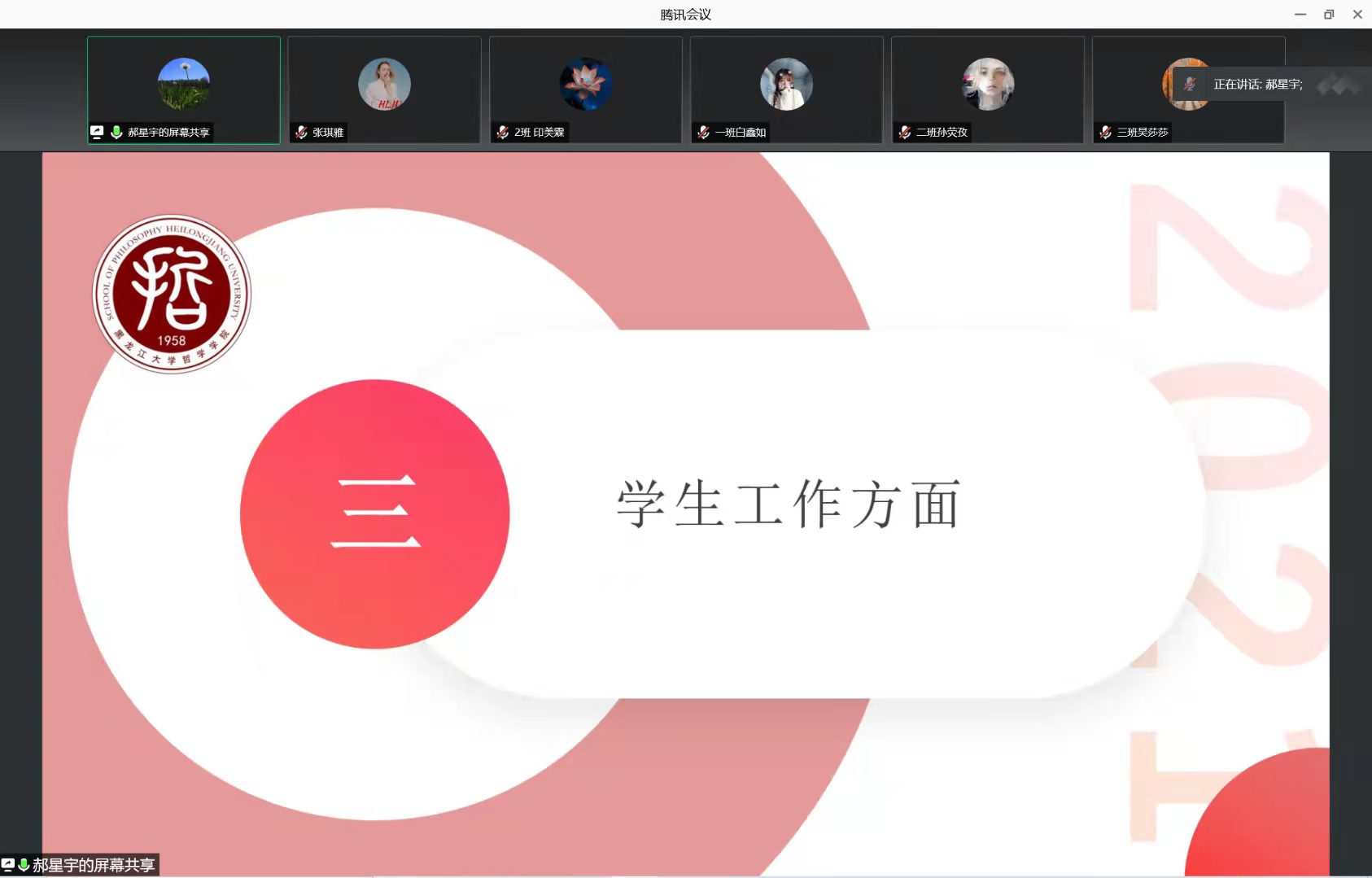 2021级新生对专业学习以及大学未来四年学习生涯的理解,2021年10月8日,学院邀请优秀在校学生为大家开展“大学四年学习经验 、学生工作经验分享与交流”线上会议,新生辅导员焦瑞老师主持会议,全体新生参加。