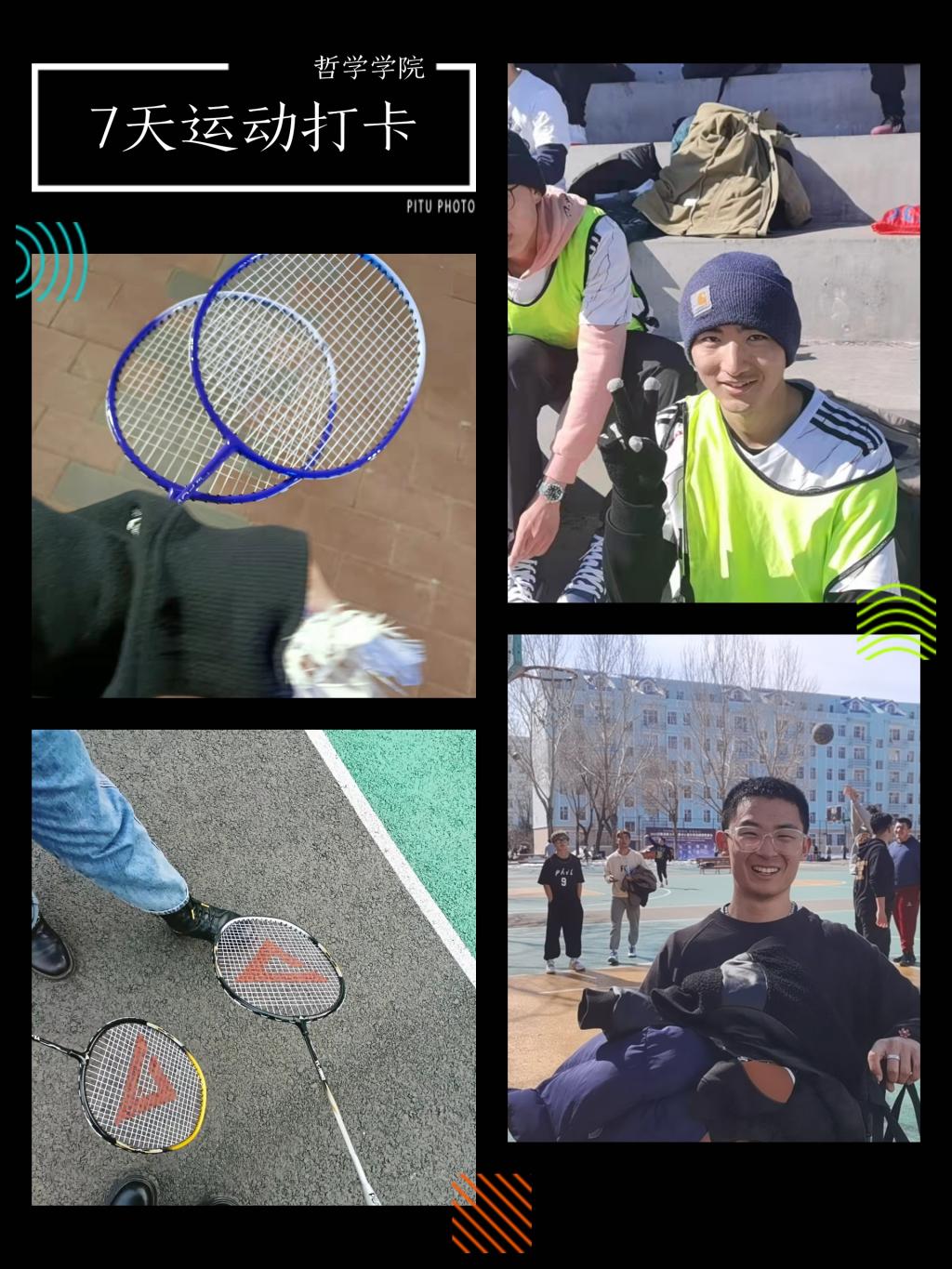 训少年之体魄,强中华之脊柱。为了引导疫情期间同学们进行足够的体育锻炼,切实有效的提高同学们身体素质,在体育运动中锻炼身体、增强毅力,在2022年3月15日-3月21日进行为期七天的健身打卡活动,同学们纷纷积极参与,通过为期7让我们一起看天的线上打卡,同学们神采奕奕,英姿飒爽,成为了校园里一道青春靓丽的风景线,展现了哲院学子的风采!(啪啪啦
