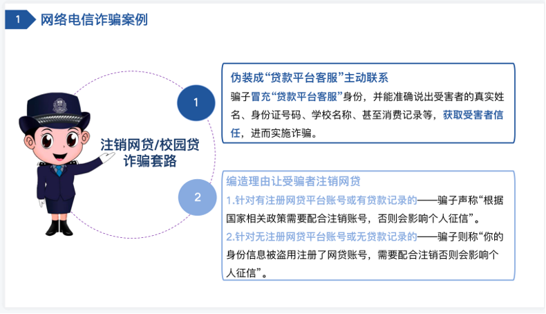 焦老师讲述并分析了六个网络电信诈骗案例,分别是大一女学生银行卡被调包、网络来历不明信息设局中圈套、微信网友志愿活动诈骗、淘宝购物诈骗、注销网贷/校园贷诈骗和网络刷单。焦老师特别讲解了与我们的生活关系密切的注销网贷/校园贷诈骗的详细案件经过和诈骗套路。