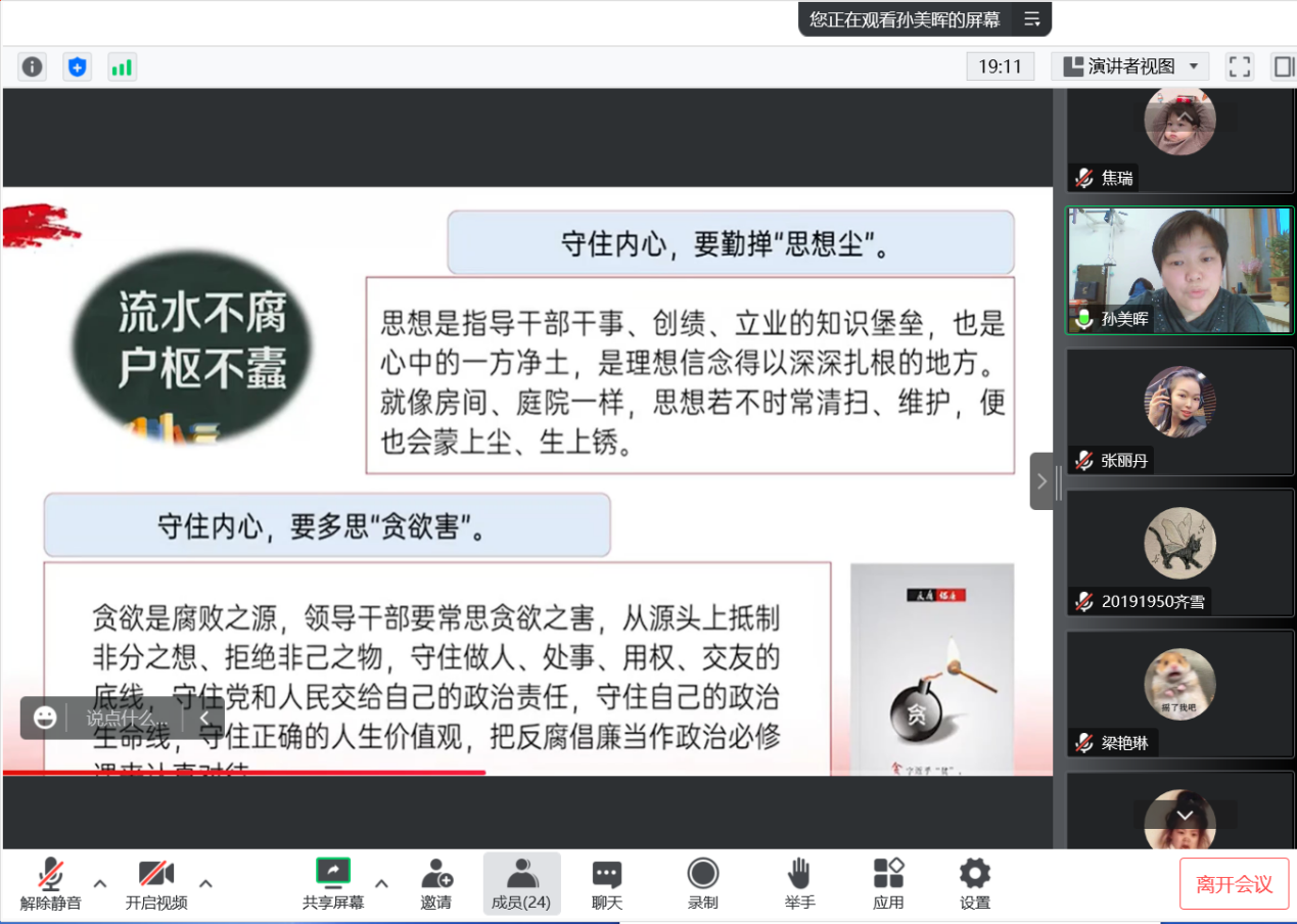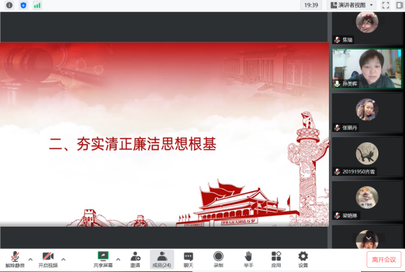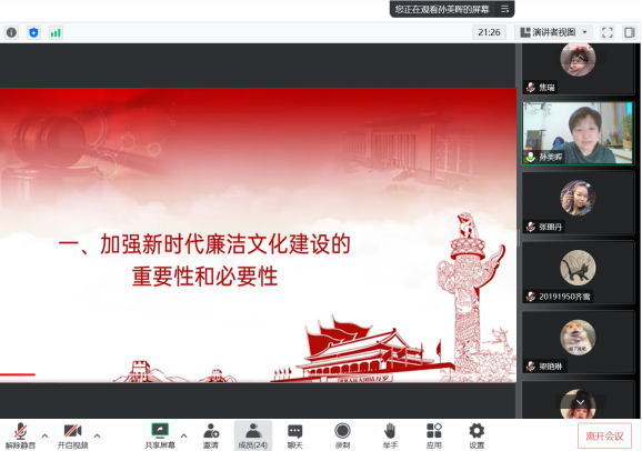 于2022年12月14日16:00在线上开展廉洁文化教育主题党课。主题党课由啪啪啦