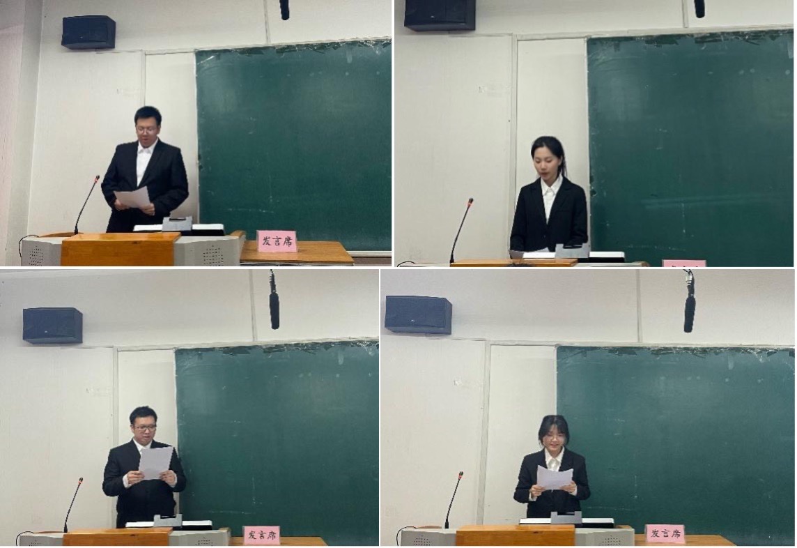 团委副书记及2021级、2022级辅导员焦瑞老师宣布投票结果:陈秋凡同学担任学生会主席,唐苓、李金埔同学担任学生会副主席,新一届学生会主席陈秋凡上台致辞演讲。