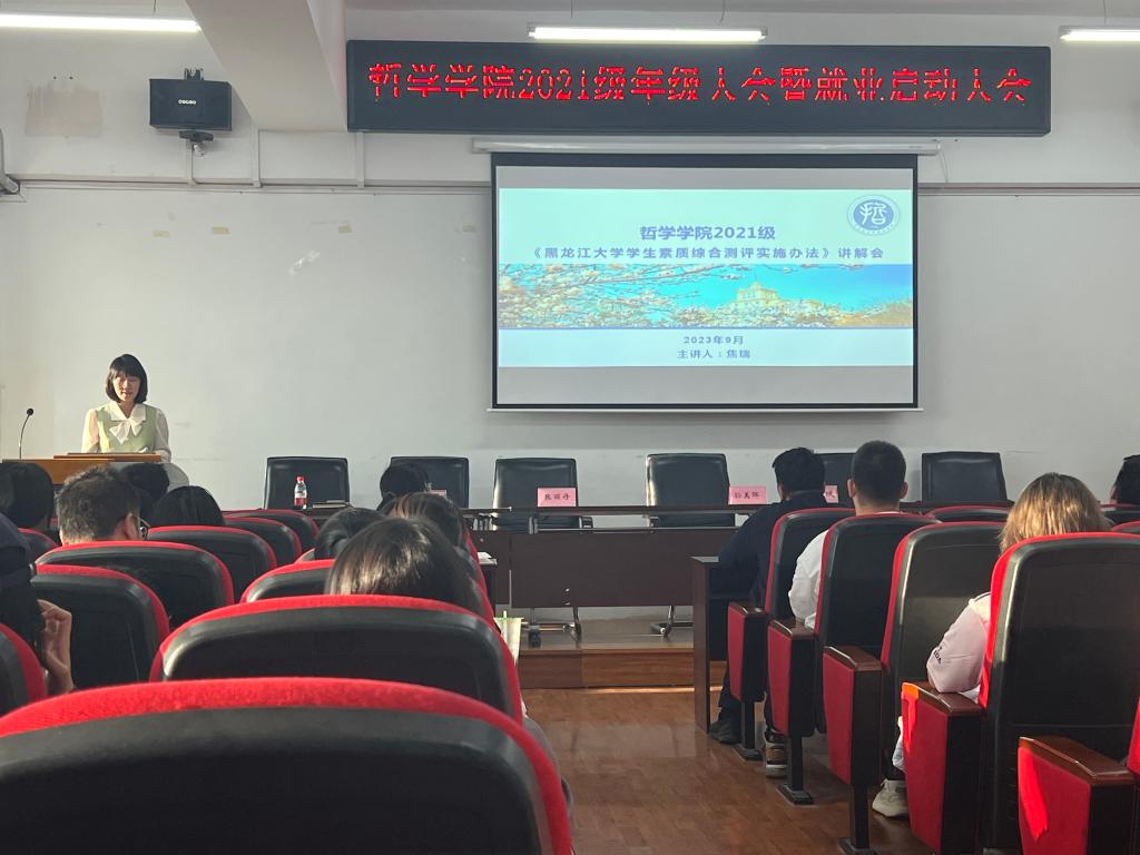 党总支书记孙美晖致辞。孙书记从大三的重要性、就业的重要性、就业的态度三方面,对21级全体同学提出了要求与希冀。对于学生层面,孙书记针对当前保研、考研、考公的形势进行分析,引导同学们明确未来自身发展目标、提高自身综合素质、保持积极乐观的人生态度。学院层面上,孙书记强调要把高校毕业生就业工作作为重要的任务,积极围绕开拓市场化、社会化的就业渠道,促进人才供需对接,实施“订单式”学生培养计划,通过开展各种针对性活动为同学们提供有效的学习锻炼、就业创业、成长成才的机会,推进学生高质量充分就业。