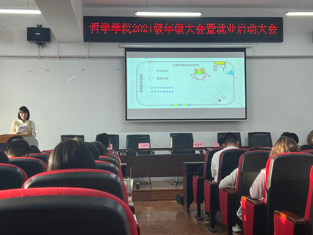 党总支书记孙美晖、党总支副书记张丽丹、正处级辅导员孙庆斌、2021级辅导员焦瑞出席会议,2021级全体同学参加本次会议,会议由焦瑞老师主持。