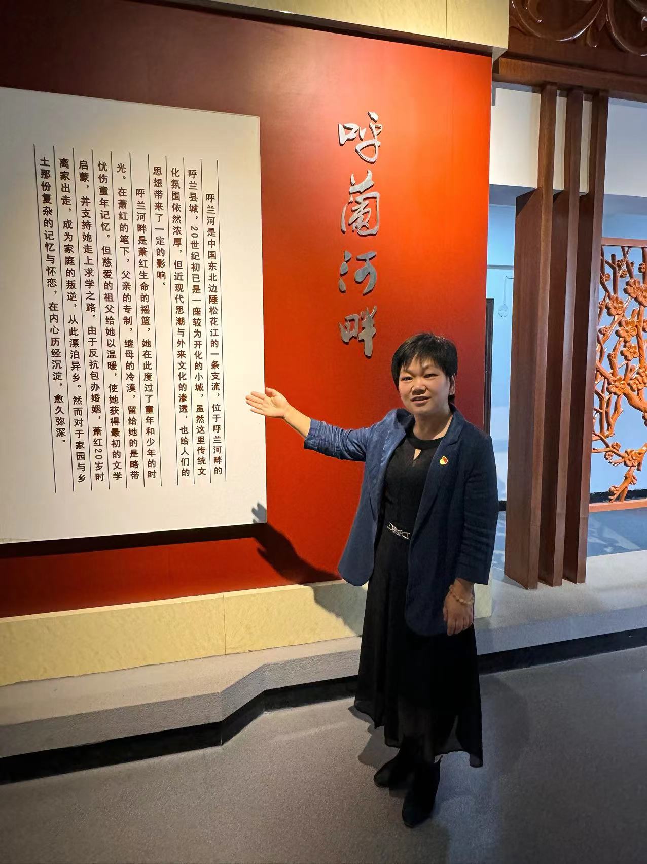 在讲解员的带领和讲解下,学院教师们在一幅幅图文和物品前认真观看、仔细聆听,对萧红曲折坎坷的人生经历和每部作品的创作背景及主题思想有了深刻的理解和把握,感悟到了萧红不屈不挠、追求自由的坚强意识和满腔的爱国情怀。