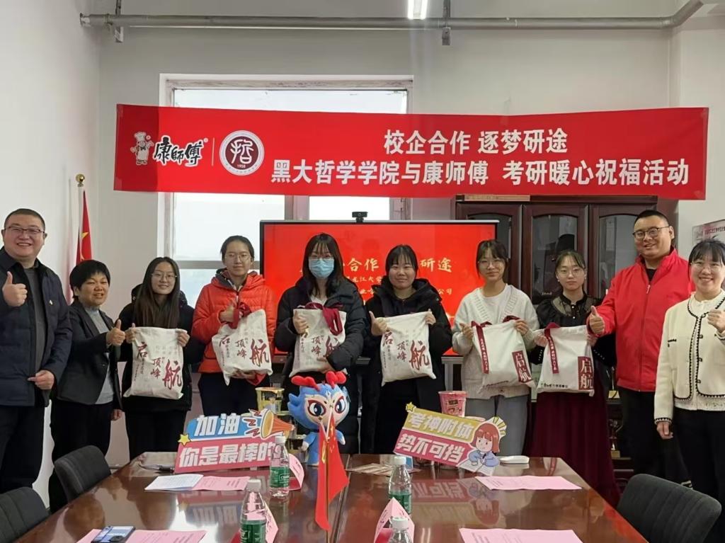 与哈尔滨顶益食品有限公司联合举办了“校企合作,筑梦研途”考研暖心祝福活动,辅导站的同学们为考研学长学姐写上暖心祝福。本次活动通过座谈会的方式举行,为啪啪啦