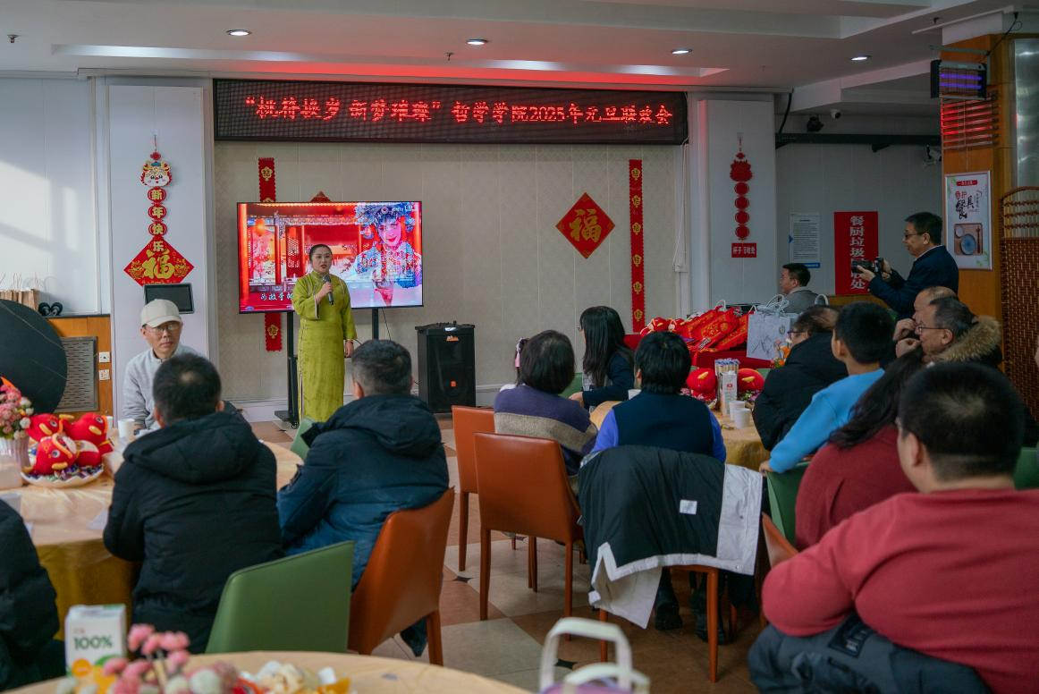 在格致园教职工第七餐厅举办了“桃符换岁 新梦璀璨”2025年元旦联欢会,全院教职工欢聚一堂,共同庆祝元旦佳节,在欢声笑语中迎接元旦的到来。