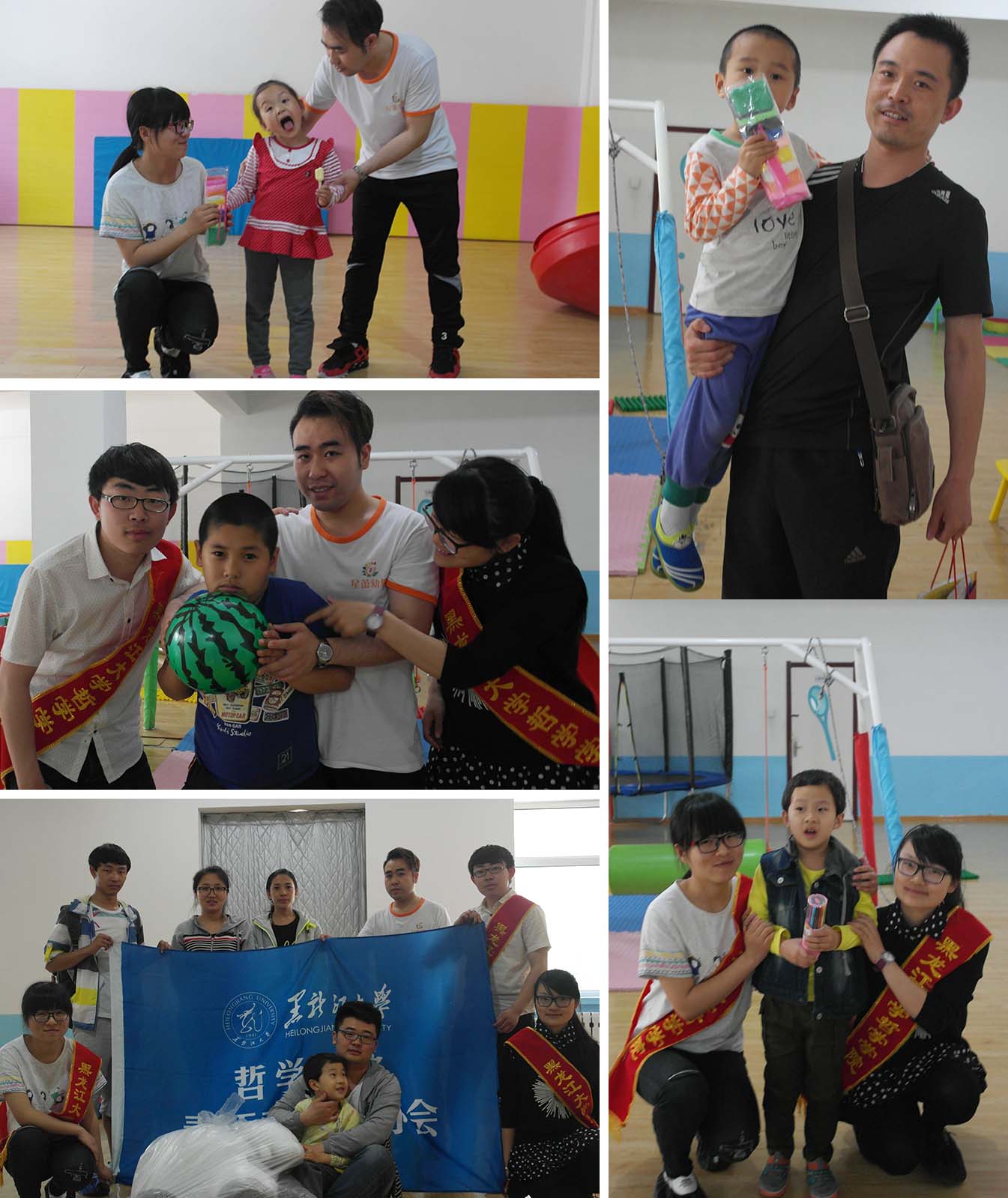 “六一”儿童节当天,志愿者们带着精心准备的小礼物来到了熟悉的星蕾幼教园。到达幼教园后,志愿者们和幼教园的老师们一起布置了教室,准备给前来训练的孩子们一个惊喜。来到教室的孩子们很快就发现了教室里的变化,他们高兴地和志愿者们一起观看墙上漂亮的拉花和卡通人物贴纸。在进行了常规训练后,志愿者们开始给孩子们发放礼物。橡皮泥、小画板、洋娃娃、公仔玩偶……一个个可爱的小礼物被送到孩子们手中,连同志愿者们的关怀也送到了孩子们的心里。收到礼物的孩子们没有忘记跟大哥哥大姐姐们说谢谢,可爱的他们还为志愿者们送上了大大的拥抱。看着孩子们拿到礼物时开心的样子,志愿者们也感到十分的欣慰和幸福。伴随着时间的流逝,两个多小时的帮教活动很快就结束了。然而,在这样一个美好的节日里,由志愿者和孩子们共同构成的温馨美好的画面却留在了每一个人的心中。