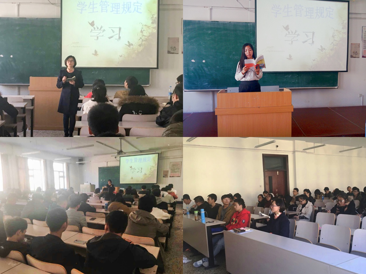 学生管理规定》的重要性,希望同学们能够通过集中学习和自主学习的方式,全面了解《规定》的内容,并在今后的学习生活严格遵守。接下来,黄老师就学籍管理、寝室管理、奖励与惩罚进行了详细解读,重点强调了诚信考试重要性以及考试违纪的严重后果,希望同学们认真严肃的对待大学中的每一场考试,给自己一份满意的答卷。