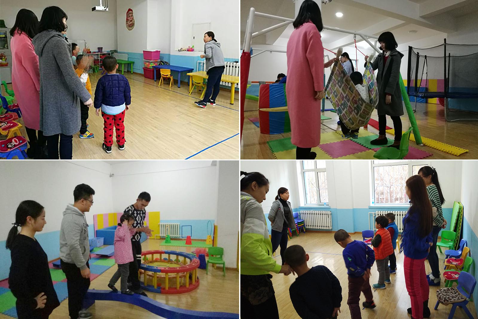 常怀感恩之心,常行感恩之事。青协志愿者们秉持这一信念在寒冬一次又一次来到星蕾幼教园,送给孩子们温暖与欢乐。每次来到幼教园后,志愿者们首先帮助幼教园老师一起对孩子们进行日常的感统训练,训练的内容包括跳床游戏、左右腿练习,抓球训练等项目,青协志愿者们耐心地帮助孩子们,希望在自己的帮助下孩子们可以锻炼他们的平衡能力和对肢体的协调能力。在日常训练结束后,青协志愿者们还会陪孩子进行游戏训练,包括拼图、分捡豆子、学写数字、穿珠子等,来帮助孩子们锻炼他们集中注意力的能力。每次帮教活动的最后,志愿者们都会与孩子们进行简单的交流,给孩子们唱歌跳舞,拉近彼此距离的同时让孩子们感受到了外界的温暖。