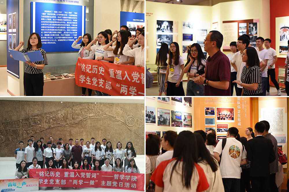 学生党员在讲解员的带领下参观了校史馆,对学校的发展变迁有了更加深入的了解,学校的光辉历史让同学们倍感骄傲,更加坚定了努力学习为母校增光的决心。随后在庄严的国歌中宣誓活动正式开始,全体党员在黄老师的带领下,举起右拳,面对鲜红的党旗重温誓词。在这个神圣而庄严的时刻之后,由2013级毕业生党员代表崔镇同学发言,他讲到,学生党员时刻都要已一名合格党员的标准来严格要求自己,无论是在学校,还是以后到各自的工作岗位上,都要严以律己,做一名合格的共产党员。接下来,啪啪啦
