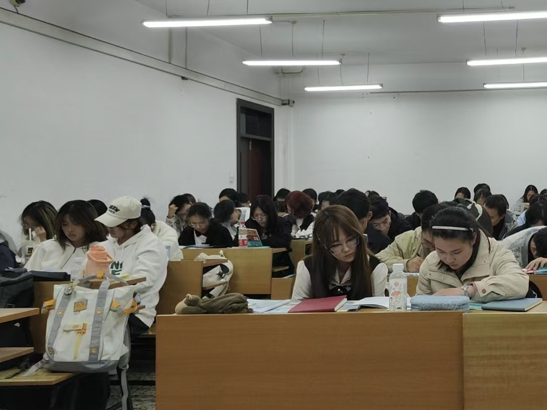 各班由班级学习委员牵头,班委会协同发力,提升晚自习管理效能。班级同学有效利用晚自习时段攻克学习难题,复习当日所学,钻研习题、查漏补缺,培养良好学习习惯。辅导员赵慧雪老师也深入学生晚自习,对各班级晚自习出勤、纪律、学习状态等进行了细致检查。