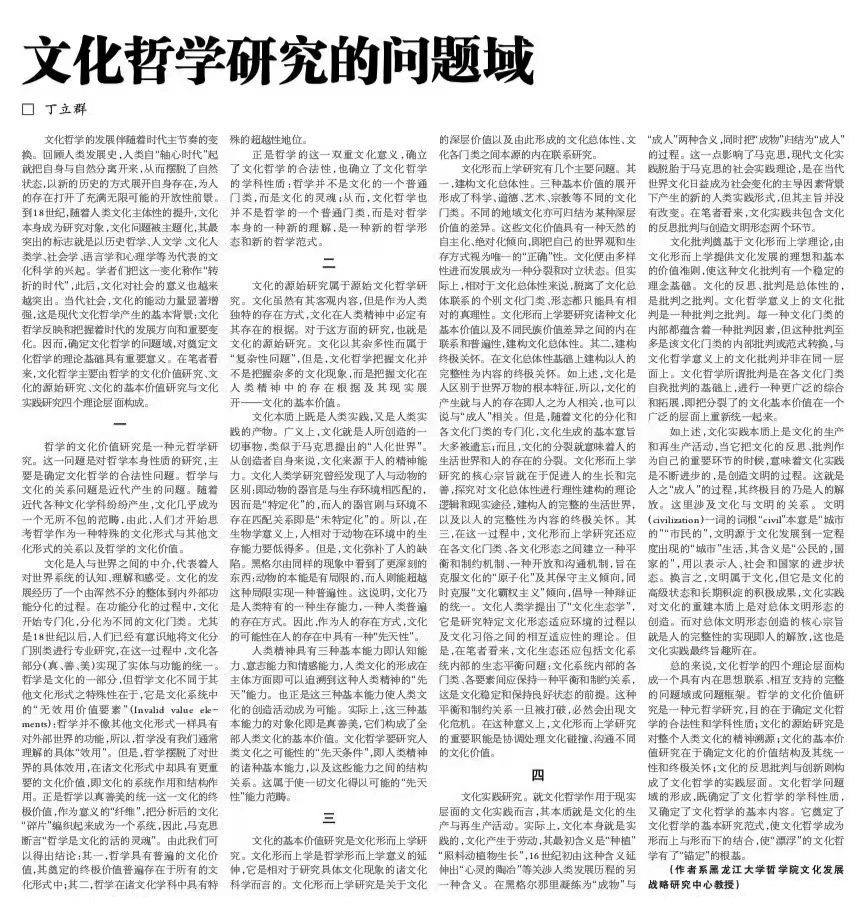 丁立群教授的文章系统梳理了文化哲学的理论框架,文章不仅具有重要的学术价值,也为当代文化哲学的发展提供了新的方向。
