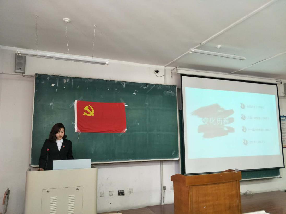 比赛采取参赛选手现场讲授和PPT演示相结合的方式进行。参赛选手围绕习近平新时代中国特色社会主义思想和党的十九大精神,以生动鲜活的实例为基础,讲出了自己的理解和感悟,学生党员代表结合当前大学生实际及国家的方针政策对党课内容做出了分析,结合自身学习工作经历,从不同角度生动地诠释了对“两学一做”的深刻理解。青年兴则国家兴,青年强则国家强。青年一代有理想、有本领、有担当,国家就有前途,民族就有希望,中华民族伟大复兴的中国梦终将在一代一代青年的接力奋斗中变为现实。习近平总书记的话坚定了青年党员的决心,激励着他们做祖国的建设者,更好的服务社会和广大人民,为祖国的伟大复兴奉献青春。把个人的理想追求同国家的前途命运紧密的联系在一起,担负起推动国家发展、民族振兴、社会进步的历史使命,不忘初心,牢记使命。参赛党员从对党章的认识、理解以及对党章的解读、作为党员如何肩负起责任与义务等几方面,全面讲解了党章内容、党章的学习经历与做合格党员的经验与方法。