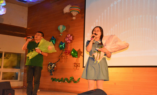 学院的教师代表姜海波、辅导员黄影两位老师共同演唱的《掌声响起》,将晚会气氛推向高潮,台上台下遥相呼应,全场掌声阵阵响起。晚会期间还播放了学院领导、任课教师以及辅导员老师对2018届毕业生们的寄语,表达了学院和老师们的殷切希望与深深祝福。