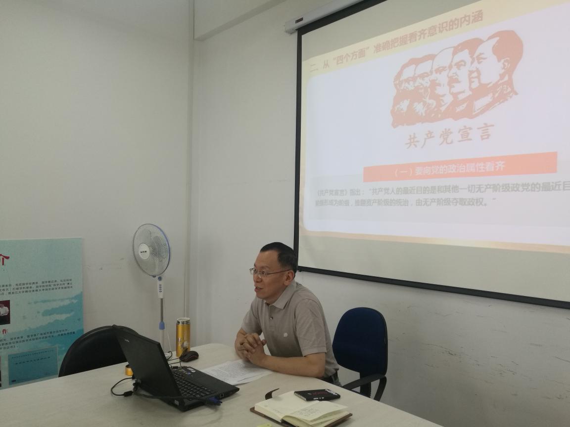 孙庆斌书记首先从“看齐意识”的思想文化渊源出发,对“看齐意识”的深刻内涵进行了阐释。孙书记强调:合格党员的标准要求我们要以“四个必须”增强看齐意识,必须坚决落实上级党委重大决策部署、必须坚定正确的政治方向、必须严守党的纪律和规矩、必须加强党性修养。空谈误国、实干兴邦。做一名合格的党员干部,需要我们从实际出发,慎独慎微,勤于自省,不断提高道德修养水平。只有时刻加强自律、心中有责、敢于担当,做学习的榜样、活动的骨干,才能真正成为一名有责任担当、有看齐意识的合格党员干部。