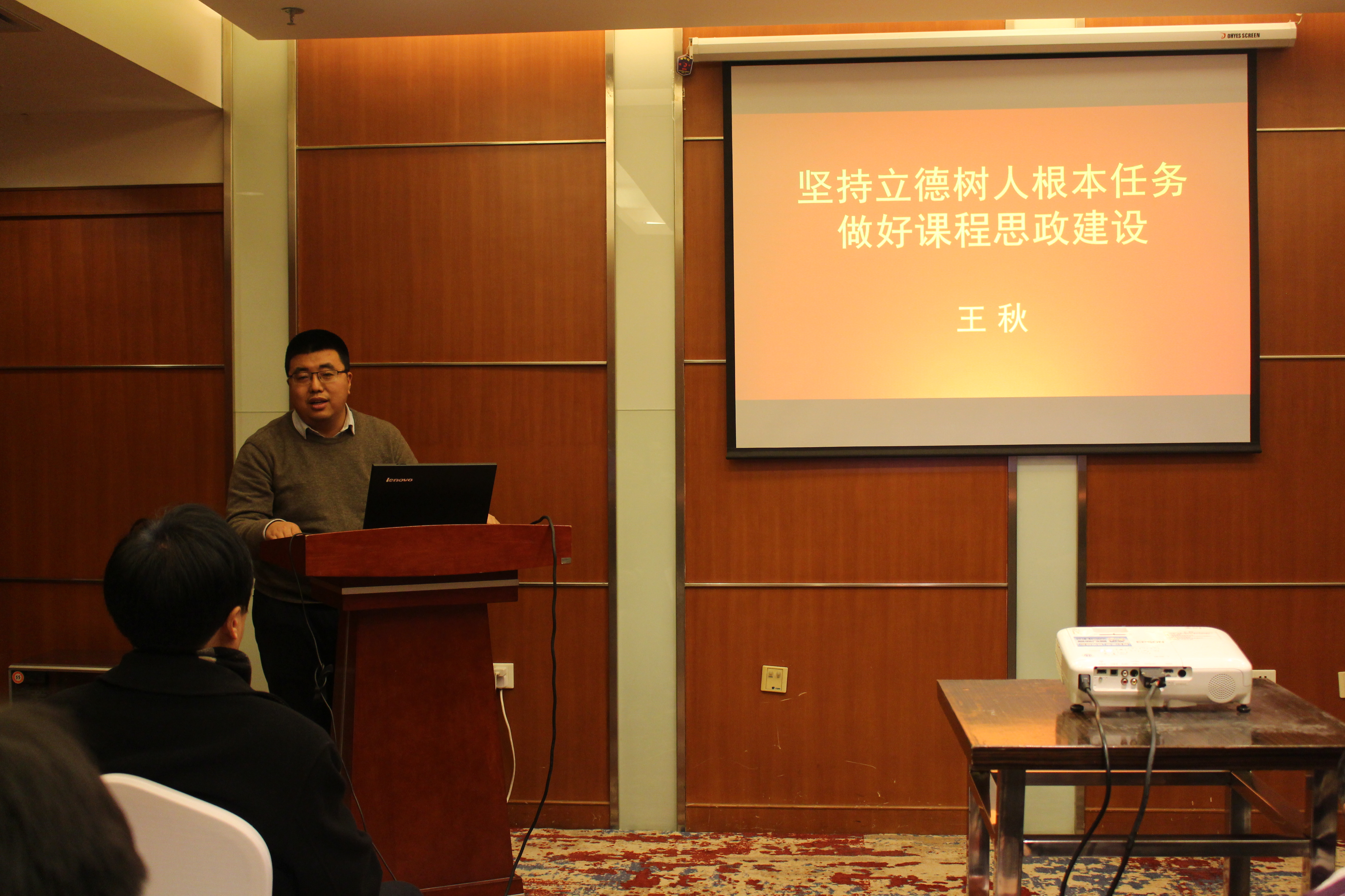 王秋老师结合自身工作实际,从以德立学、立德从教、立德为人三个方面,深刻阐释了立德树人的重要性,引导全体教师严守教师行为准则、恪守道德底线、紧跟国家战略发展需求,以本为本、坚持四个回归,不断改进教学方式,落实课程思政要求,引导学生成长成才。