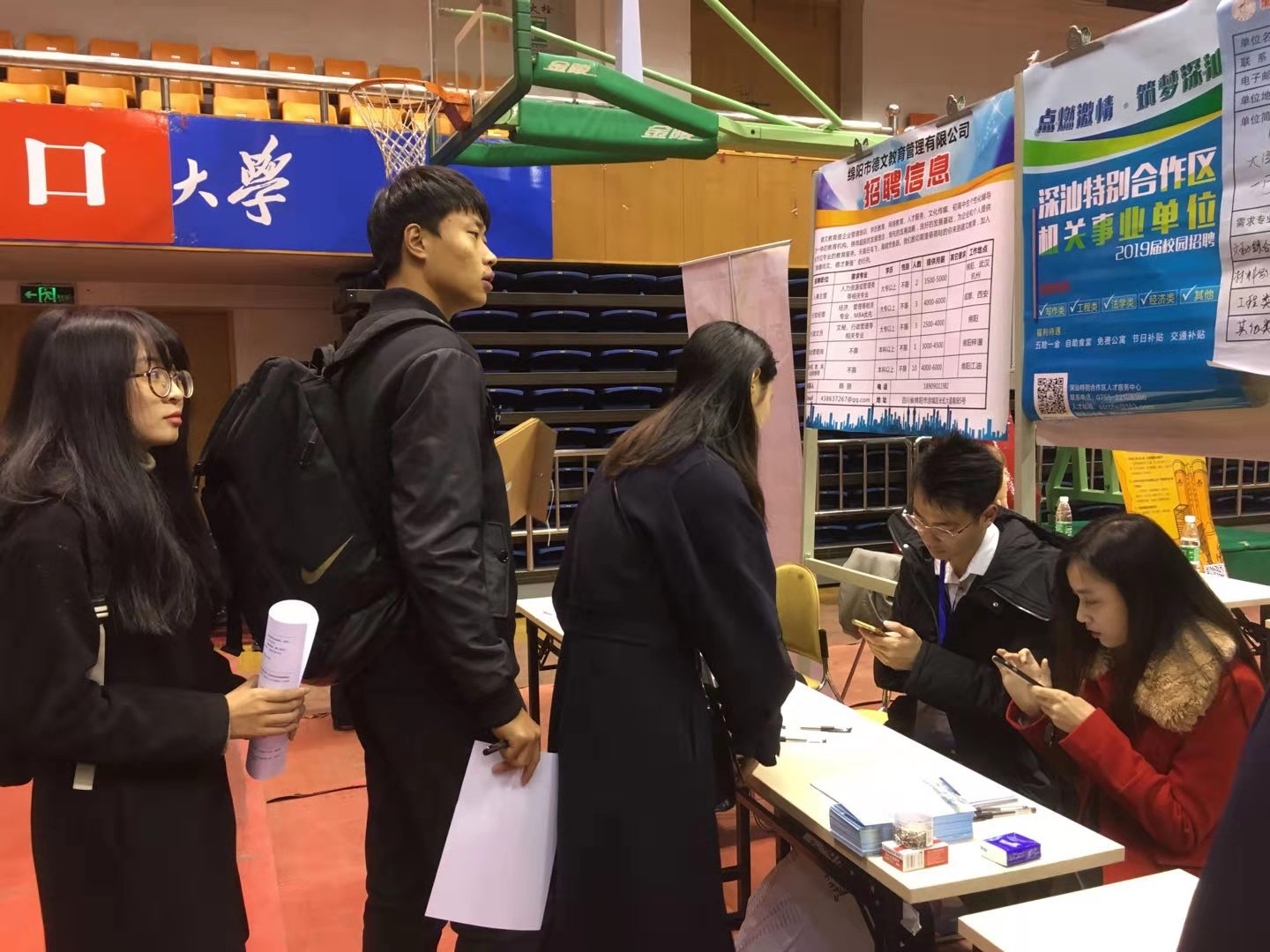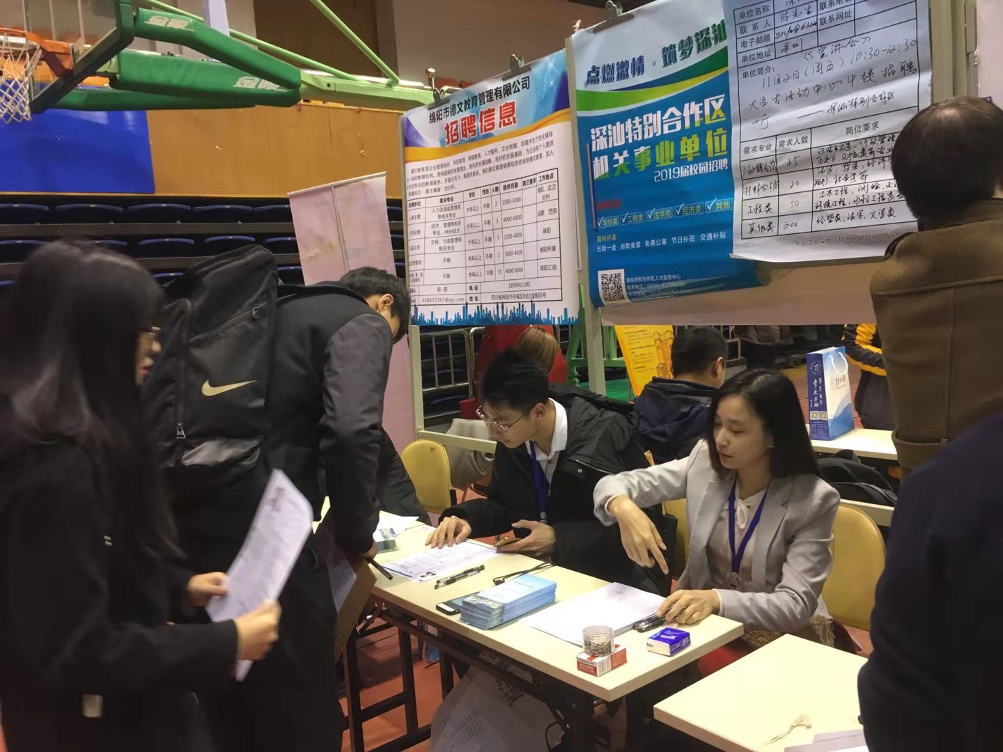 2018年11月13日啪啪啦 学院招生就业处组织开展的2019届毕业生校园招聘会在学院运动馆举行。辅导员张博伦带领我院2019届毕业生参会,期间深入了解了今年用人单位的需求和学生的就业意向,现场及时为应聘的学生提供指导和帮助,主动将我院优秀学生推荐给招聘单位。