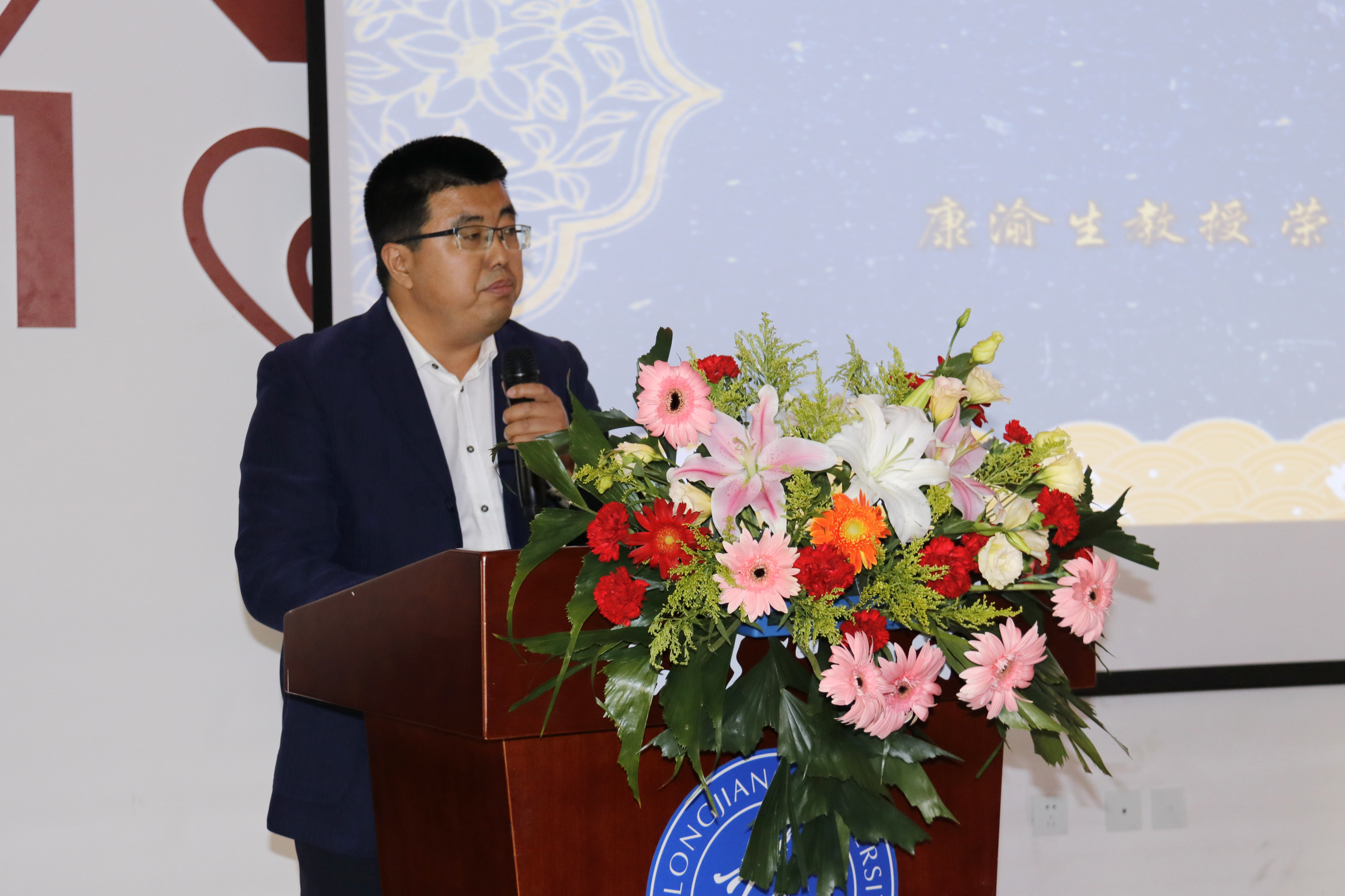 院长罗跃军代表学院师生全体为康老师送上了荣休祝福,他肯定了康老师在学院发展、学科建设上做出的贡献,期盼老师能够在学院今后的发展中继续建言献策,发挥余热。