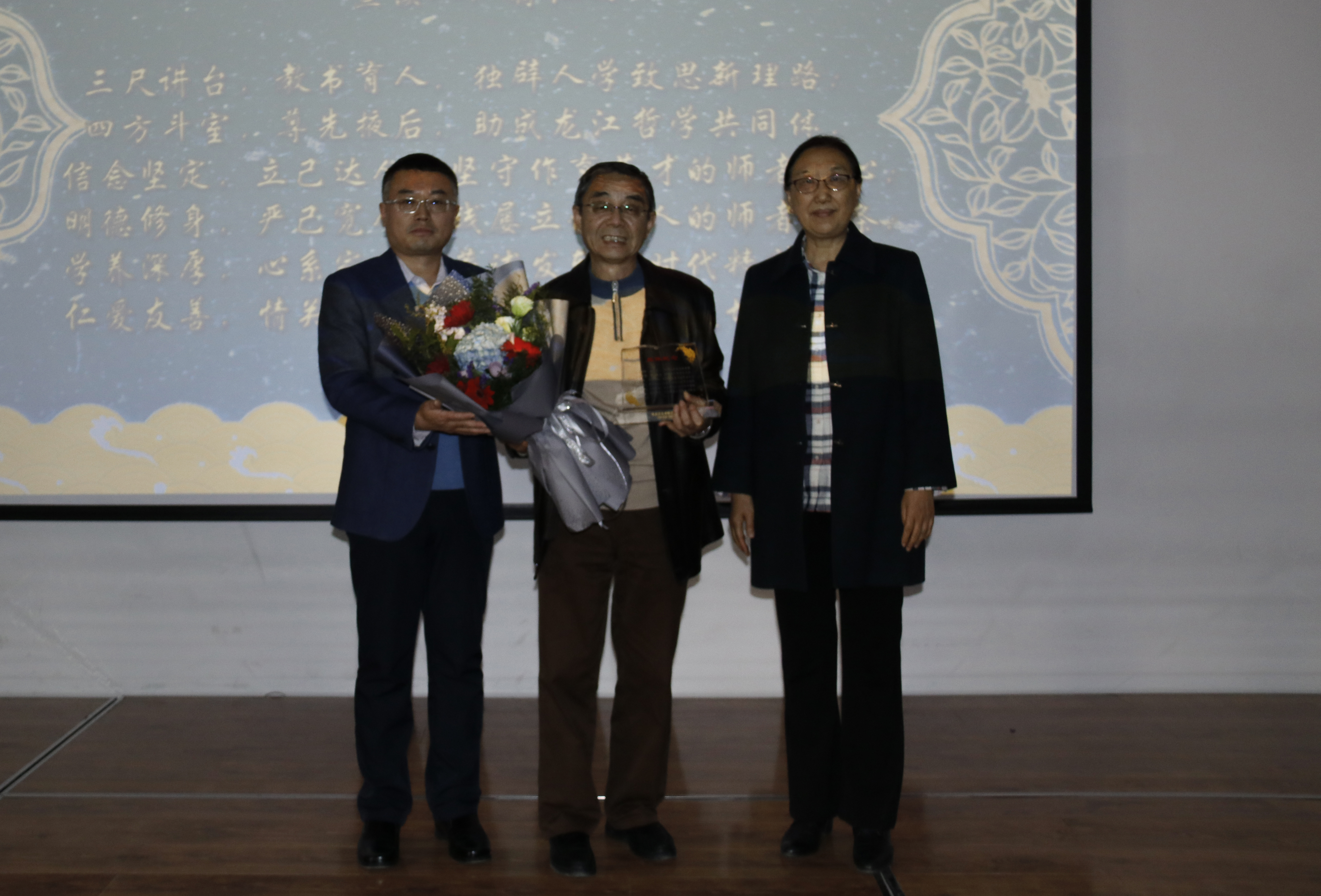 新老院长何颖、罗跃军共同向康老师颁发了荣休纪念奖牌,副院长蒋红雨宣读颁奖词。康老师感言,几十年来的耕耘让他看到了学院的发展与成长,从青丝年少到两鬓斑白,他一直在认认真真做事,踏踏实实做人,期待着年轻人能够长江后浪推前浪,不忘黑大哲人的初心,牢记历史使命,期盼着学院在未来的发展越来越好。啪啪啦