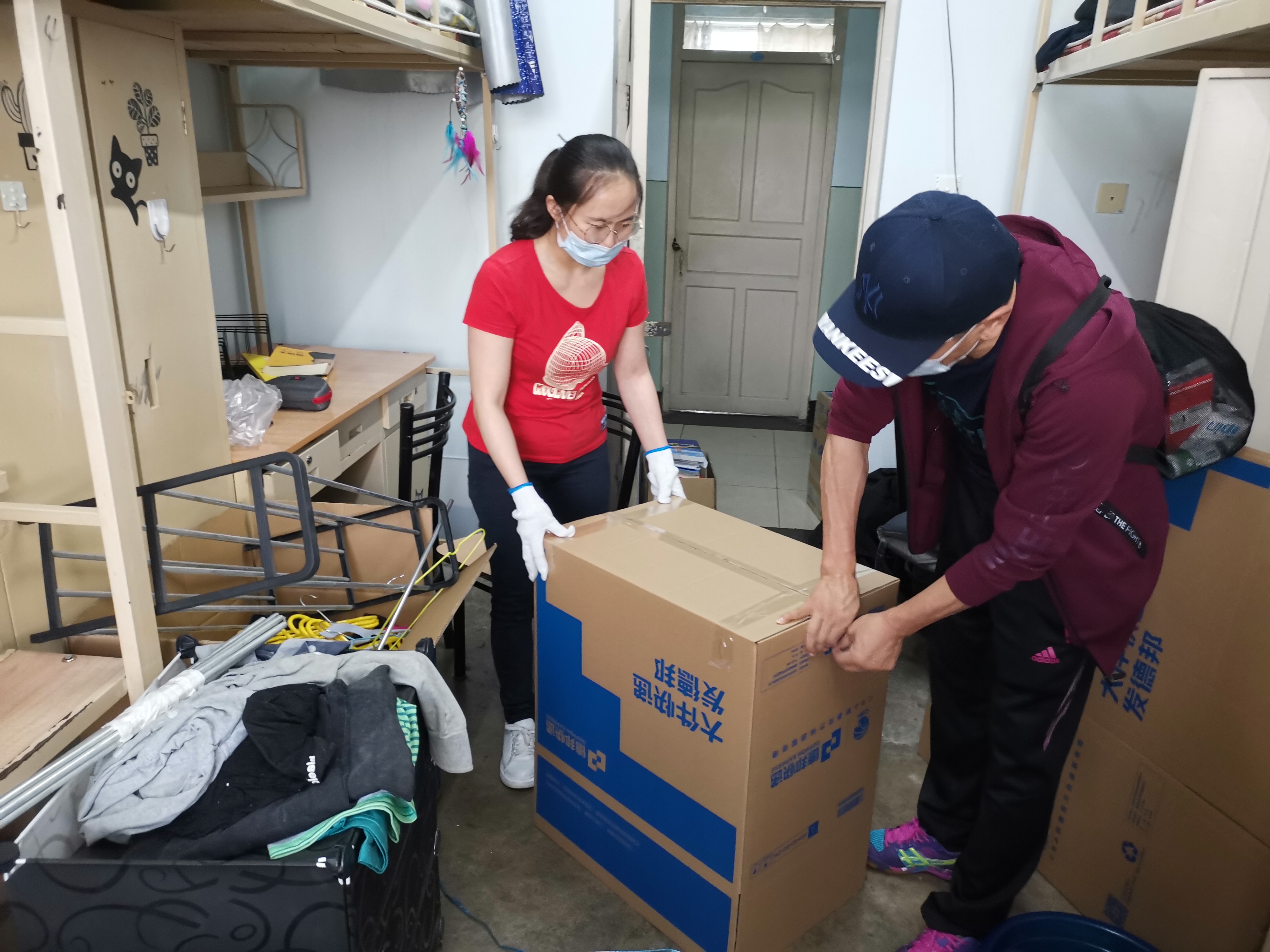 因疫情原因,2020年的毕业季较往年格外不同,啪啪啦 的毕业生无法返校,为了帮助学生解决这一现实难题,6月14日学院领导班子带领教师志愿者深入毕业生各个寝室帮助学生收拾寝室,打包托运行李,用爱为毕业生护航远行。