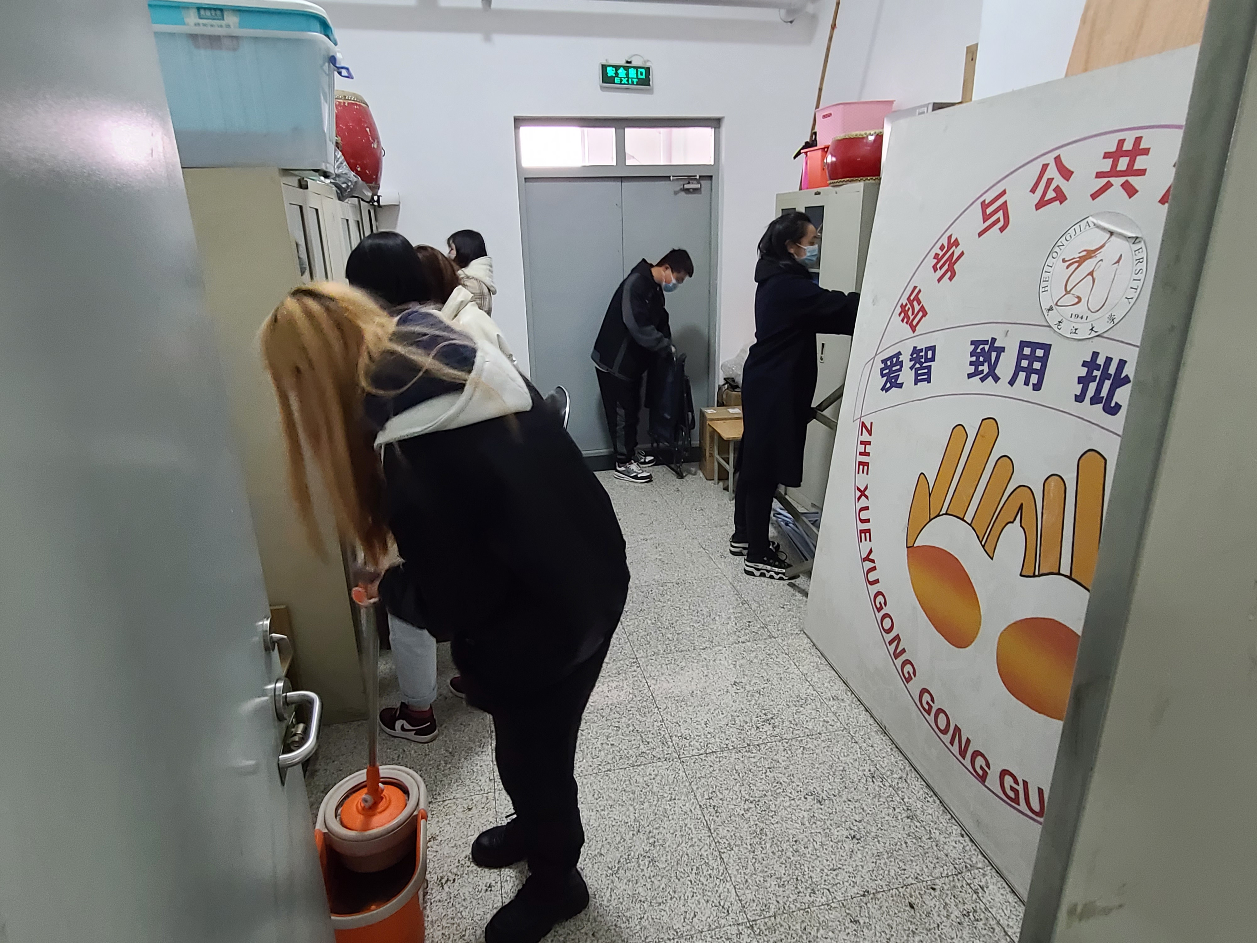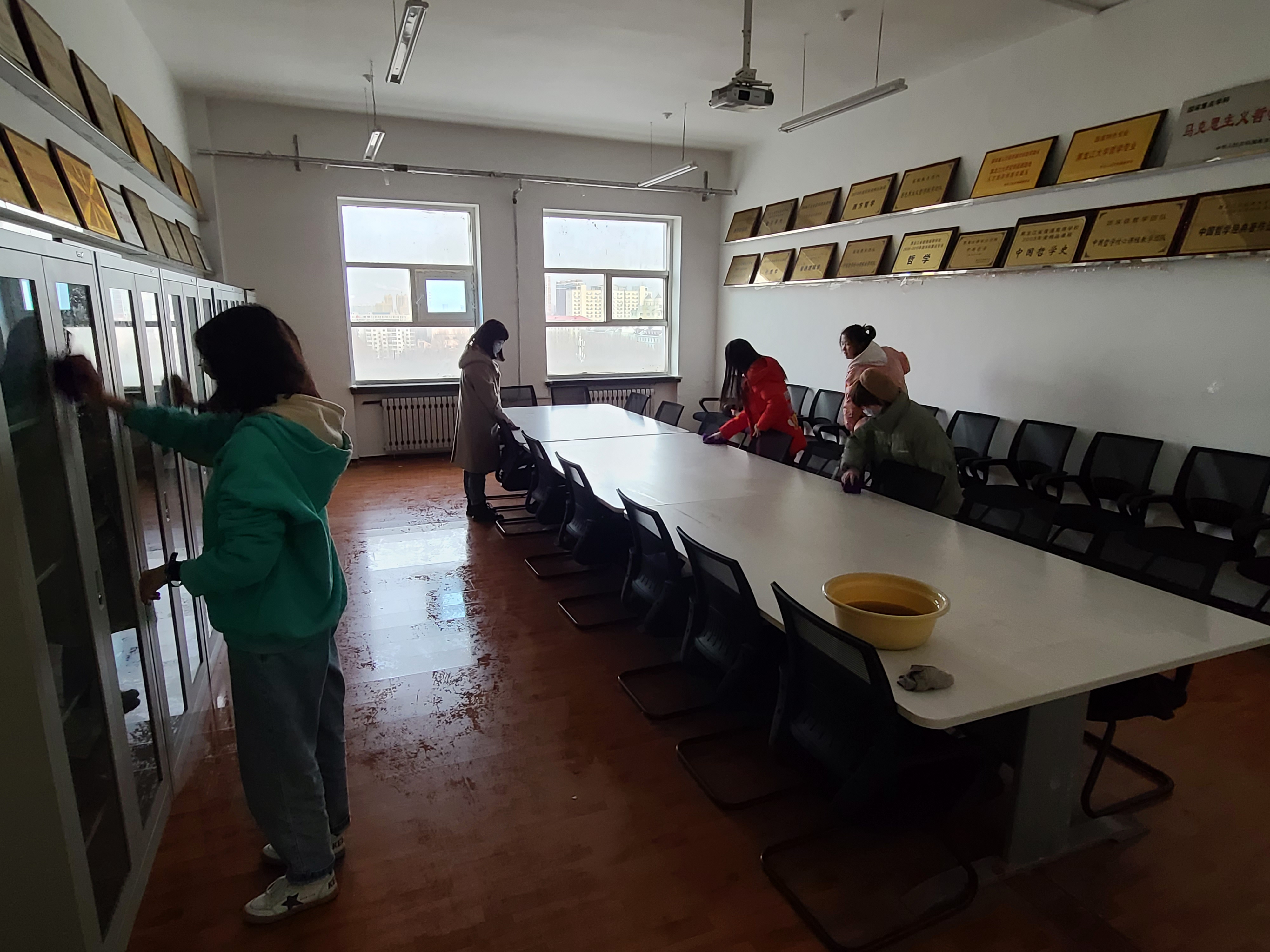 在活动中,主要组织学院青年志愿者针对汇文楼部分教室办公场所的卫生进行了清洁工作,同学们认真拖地扫地,将杂物分类码放整齐,充分表现了啪啪啦