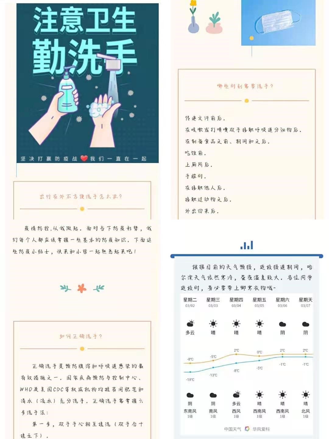 开展“居家运动小课堂”活动,开辟了“疫情防控小贴士”、“居家心理小贴士、“生活小贴士”等生活温馨提醒专栏,及时提醒学生关注自己身心健康,锻炼强壮的身体与积极向上的心态。鼓励学生利用闲暇时间开展21天居家锻炼打卡,认识到身体健康的重要意义,根据自身实际情况,合理制定运动方案,养成经常运动、规律作息的生活习惯,培养自律意识,锻炼身体素质,收获充实的生活和良好的状态,以积极向上的精神面貌和健康体质享受美好的假期生活。