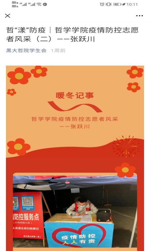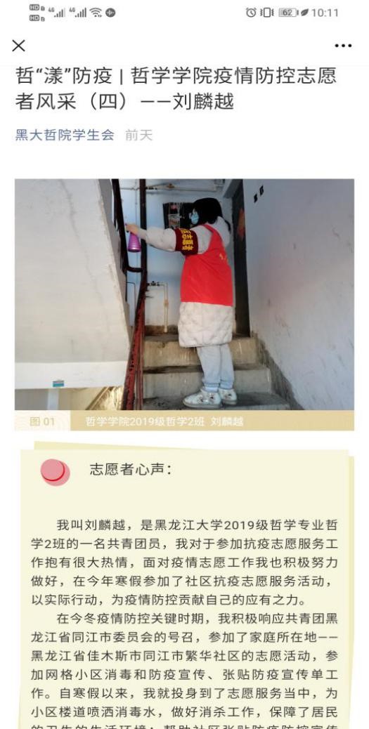 疫情防控志愿者风采专栏”,注重报道宣传学院学生主动投身疫情防控一线的先进事迹,讲好身边榜样故事,鼓励向身边典型学习,以实际行动擦亮青春底色。