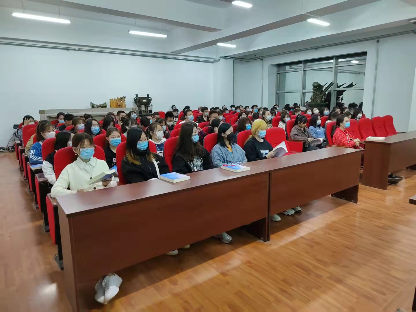 学生管理规定》学习会。新生辅导员焦瑞主持会议,全体哲学学院学生参加会议。