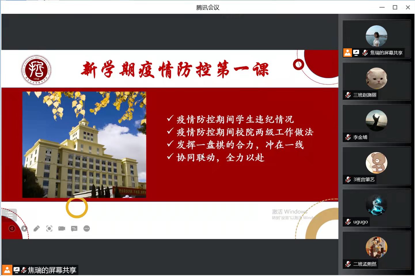 各年级分别组织召开“疫情防控开学第一课”暨年级大会,19级辅导员孙庆斌老师、18级20级辅导员张博伦老师、21级辅导员焦瑞老师分别主持会议,啪啪啦
