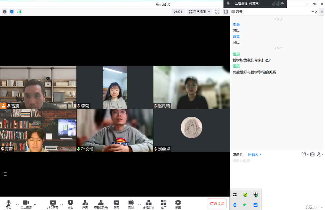 此次活动主要以线上读书会的方式,根据学生专业学习产生的想法与疑虑展开探讨,答疑解惑。围绕学生生涯规划、学业发展、本科生科研展开交流讨论;掌握和评估学生在疫情期间的心理状态、心理健康情况;与学生分享专业书籍及课外书籍,让同学们能够更明确的选择专业的书籍进行阅读。