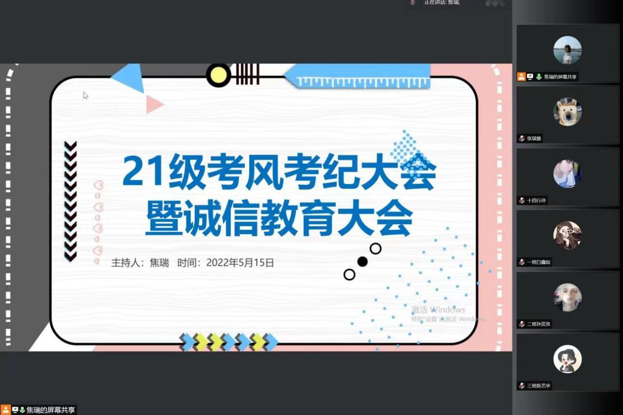 分年级分层次于5月13日-5月15日召开期末考风考纪大会暨诚信教育大会。会议分别由孙庆斌老师、张博伦老师、焦瑞老师主持,啪啪啦