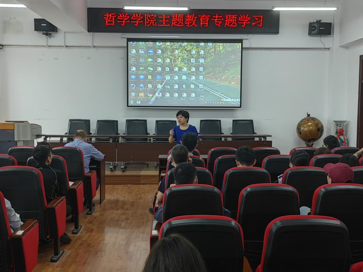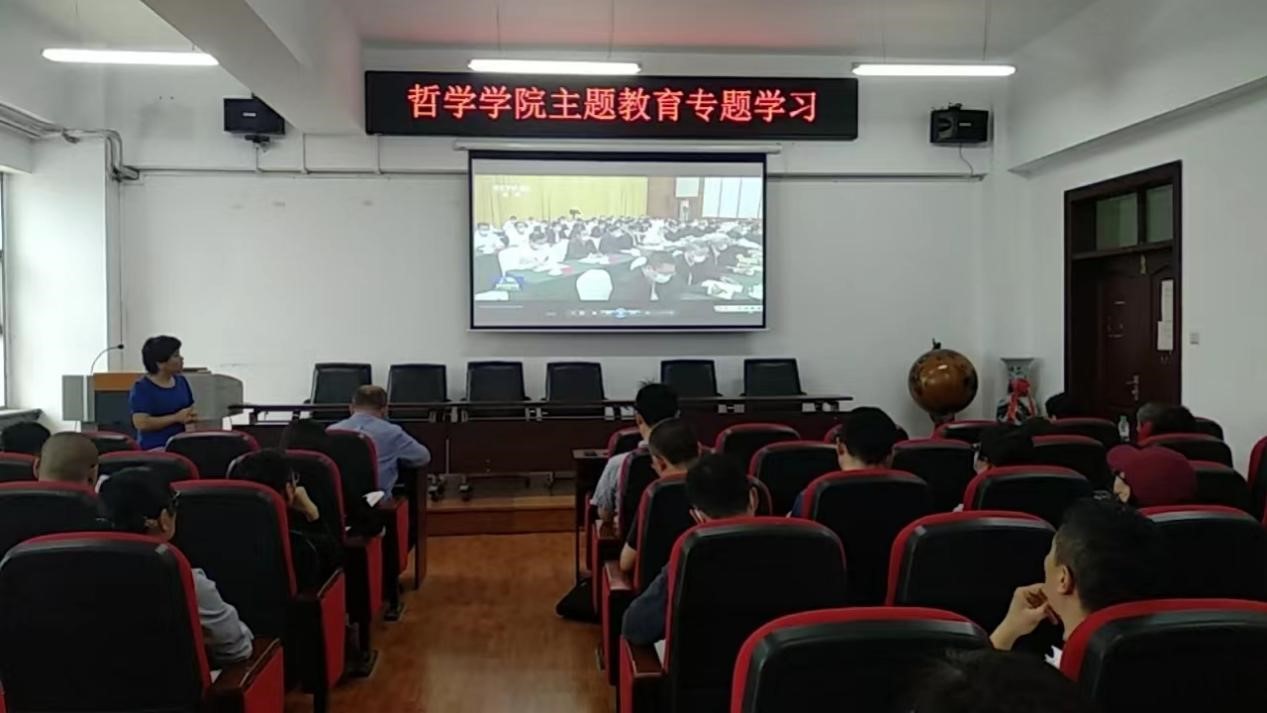 于汇文楼937室开展全院教师主题教育专题学习会,会议由啪啪啦
