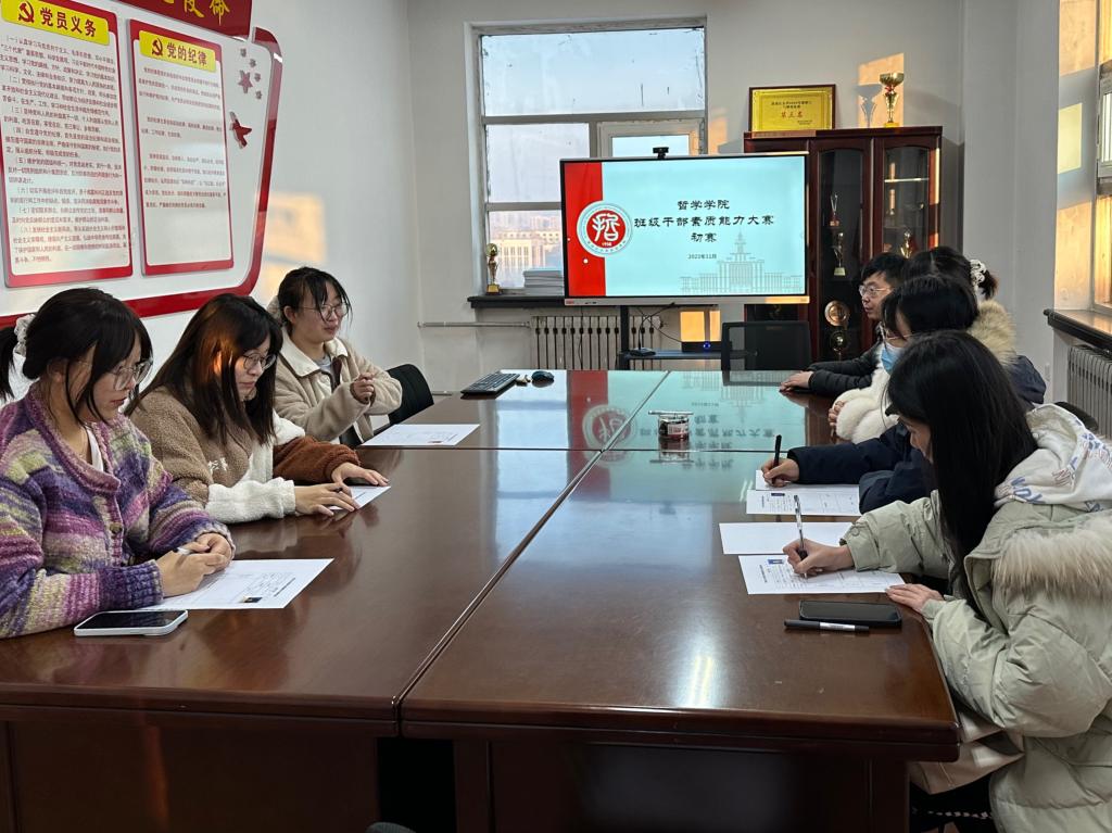 于2023年11月13日在汇文楼916教室举办了“班级干部素质能力大赛”初赛,辅导员张博伦、焦瑞担任监考员。
