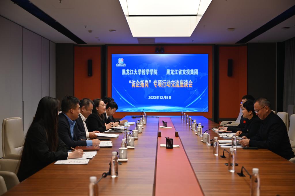 与黑龙江省交通投资集团有限公司“访企拓岗”专项行动交流座谈会于2023年12月5日在省交投集团会议厅召开。省交投集团党委副书记、职工董事、工会主席赵阳,省交投集团人力资源总监、组织人事部(人力资源部)部长(总经理)尹达,省交投集团人才发展中心(党员教育中心)主任王连民、省交投集团人才发展中心谢君平、翁汇聪、陈铭以及啪啪啦