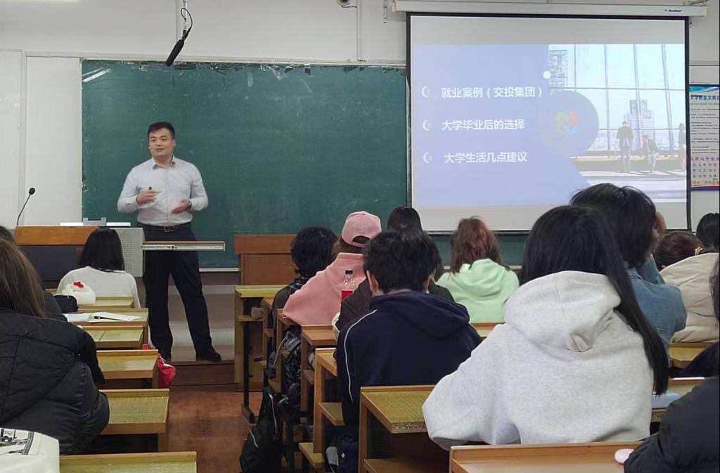 于2023年12月7日在汇文楼737教室举行2023级学生职业认知讲座。省交投集团人才发展中心(党员教育中心)主任王连民担任主讲嘉宾,啪啪啦