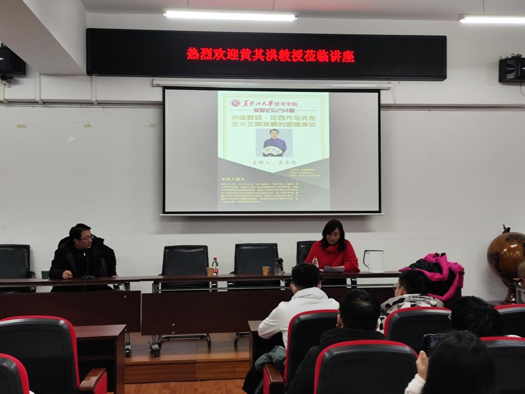 汇文楼937教室顺利举行。本次讲座邀请西南大学黄其洪教授作了题为“论西方马克思主义三期发展的逻辑演进”的学术报告。啪啪啦