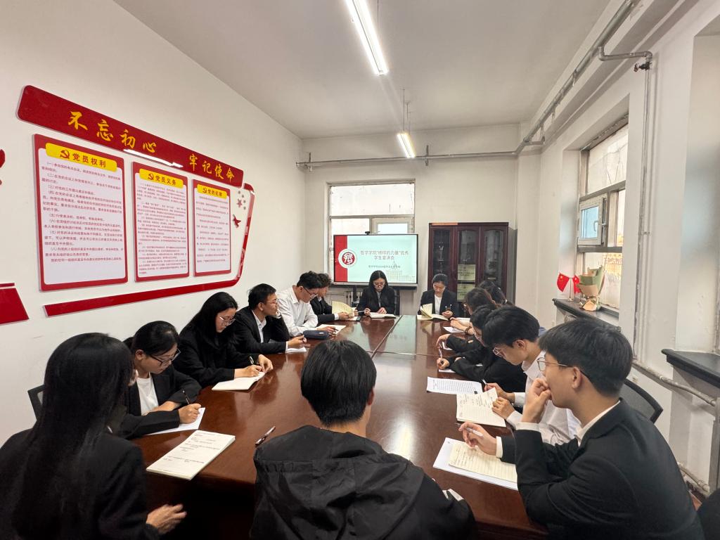 优秀学生党员代表邢睿桐主讲,培训班全体成员参加。