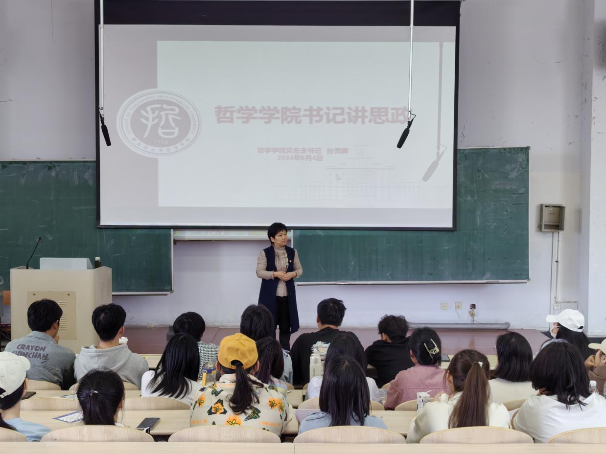 党总支书记孙美晖于汇文楼221室讲授专题思政课。她表示,新时代建设中华民族共同体与建设中华民族现代文明同向而行,中国式现代化为中华民族共同体建设夯实物质和精神文明基础,中华民族共同体建设为中国式现代化凝聚磅礴力量。铸牢中华民族共同体意识的提出,是应对国内外一切风险挑战的重大决策部署,是维护国家统一、民族团结的必然要求,是强国建设、民族复兴的必由之路,具有十分重要的意义。铸牢中华民族共同体意识不仅仅是理论学习,更需要在日常生活中实践和体现,她鼓励同学们充分依托学院现有平台优势,积极参加例如依托学院二级教授关健英老师的国家社科基金重大项目——中华民族共同体的伦理认同研究,组建的铸牢中华民族共同体意识调研宣讲团队等,在实践中切身增强对中华民族共同体意识的认同感。