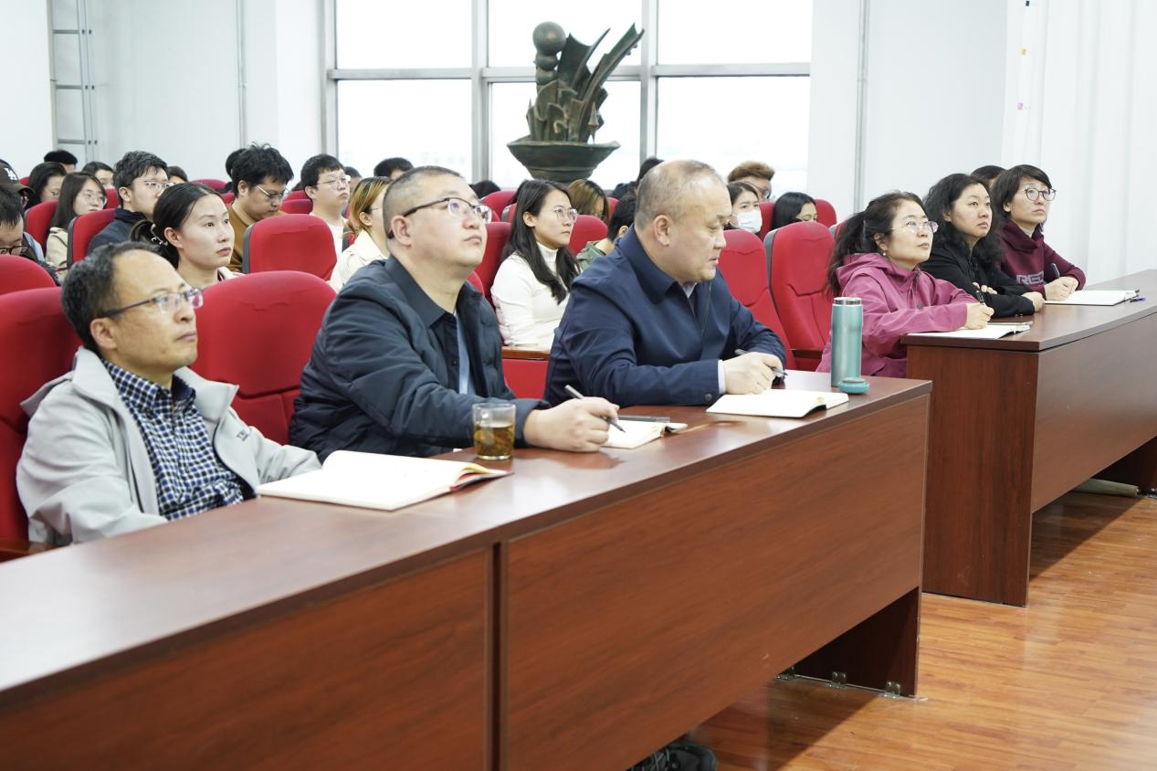 王秋教授以《锲而不舍落实中央八项规定精神,推进作风建设常态化长效化》为题,围绕中国共产党的作风建设的历史源流、全面认识中央八项规定精神的深刻内涵、“学查改立”中一体推进作风建设常态化长效化三个方面进行宣讲,强调要持之以恒推进作风建设,以清正党风、务实政风引领院风向上向善发展。