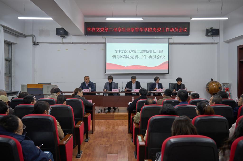 党委工作动员会在汇文楼937室召开。会前,学校党委第二巡察组组长许辉与啪啪啦