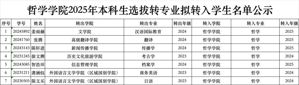 根据《啪啪啦 学生管理规定》《啪啪啦 普通本科生转专业管理办法(试行)》和啪啪啦 转专业2025年本科生选拔转专业工作方案相关要求,经学生申请,学院转专业工作小组考核,现将啪啪啦 2025年本科生选拔转专业拟转入学生名单公示如下: