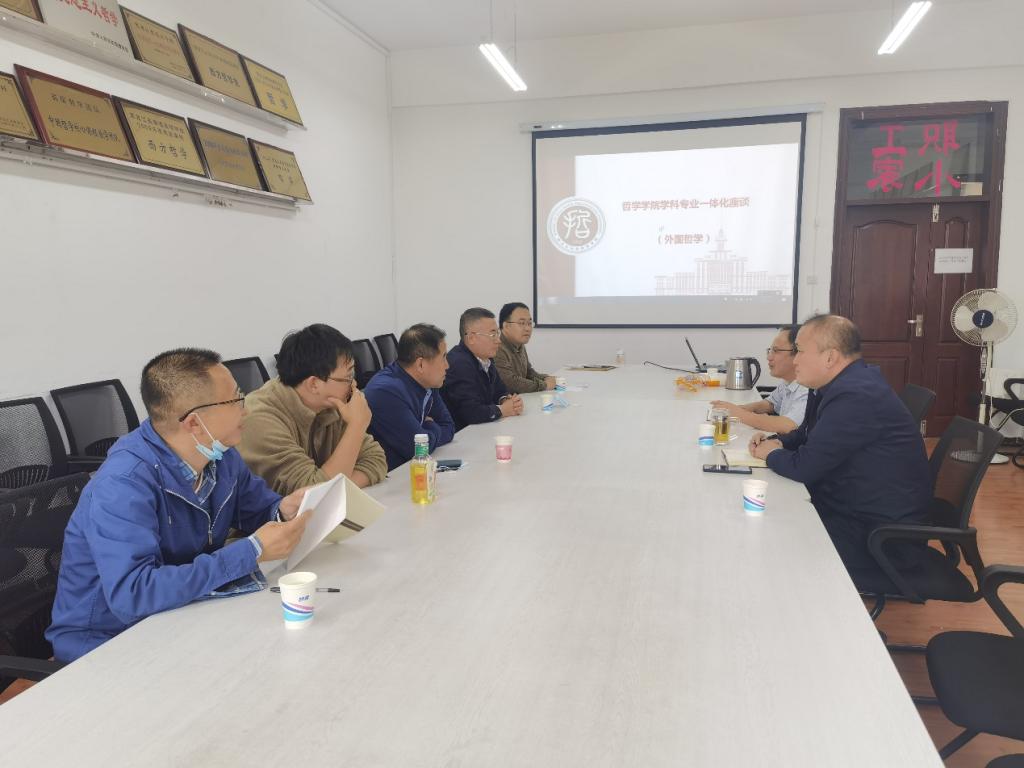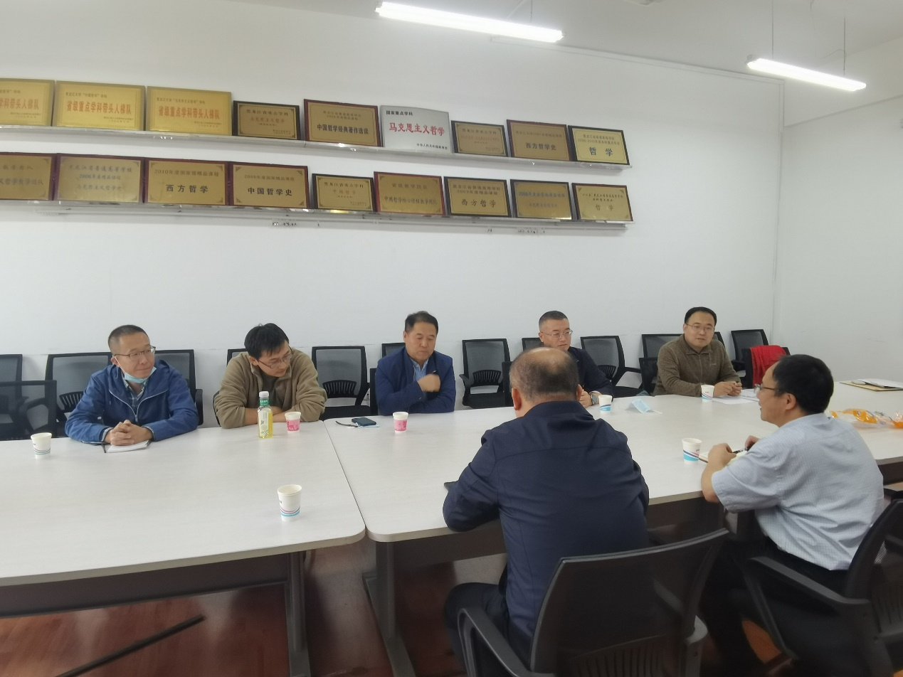 学科专业一体化建设基层调研系列之三,“走进外国哲学”活动在汇文楼922进行。学院领导班子成员与外国哲学教研室全体成员以新文科建设、学科专业一体化建设、研究教学型学院建设为背景,就学院的发展定位、未来发展规划、外国哲学研究团队建设、教研室建设、青年教师建设规划等内容进行了深入交流。
