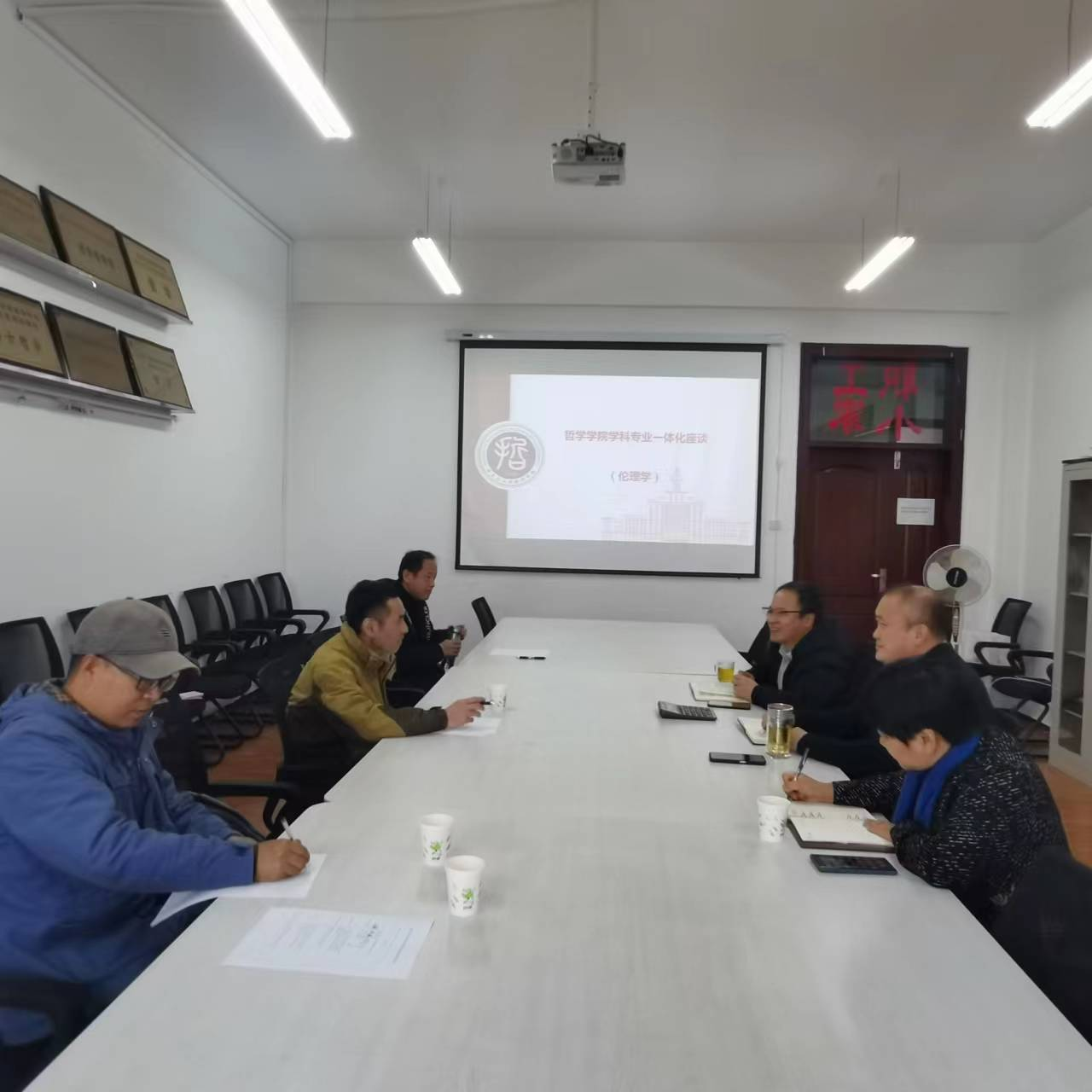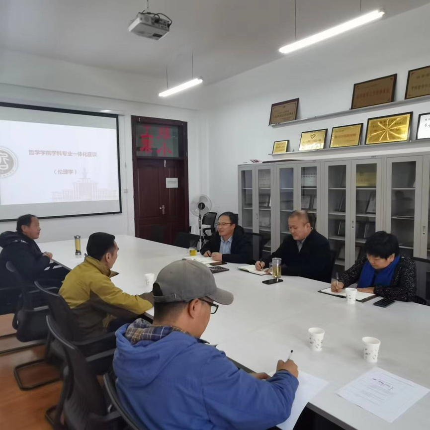 学科专业一体化建设基层调研系列之四,“走进伦理学”活动在汇文楼922进行。学院领导班子成员与伦理学教研室全体成员以新文科建设、学科专业一体化建设、研究教学型学院建设为背景,就学院的发展定位、未来发展规划、伦理学研究团队建设、教研室建设、青年教师建设规划等内容进行了深入交流